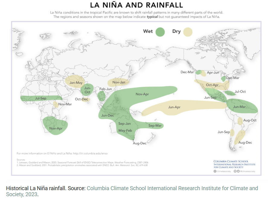 Rainfall timing of La Nina. Source: https://www.climateimpactstracker.com/la-nina-winter-weather-forecast/