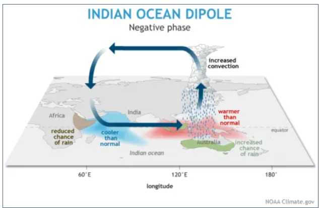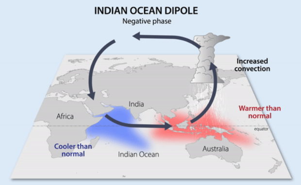 A negative phase of IOD. Sources: https://earthobservatory.sg/earth-science-education/earth-science-faqs/climate/climate-processes/indian-ocean-dipole; https://www.worldclimateservice.com/2021/09/02/indian-ocean-dipole/