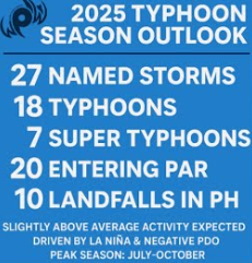 Around 27 named storms, 18 typhoons and 7 super typhoons is expected.