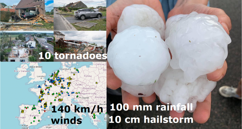 Before severe storms in Europe, which hit at the weekend in full power, we have warned in series of last articles /10 cm hailstorms are shifting to Germany, CZ, CH, AU, DK, SE and N IT from France, PT, ES, BE, NL, LU! – mkweather; Belgium hit EF2 tornado with a twin: 17 injured, 92 buildings damaged – mkweather; Europe is preparing for the worst storms of the year: Hailstorms, gusting winds, heavy rains with flash floods, damaging lighting, rare tornadoes… – mkweather; Severe storms are shifting from FR, UK, ES, PT, NL, BE to GE, CH, AU, IT – mkweather; Ex-tropical storm Bill hits British Islands, brings storms and strong cooldown – mkweather; Warning! After heatwaves are coming violent storms! – mkweather; Severe storms hit Portugal and the Spain after the 2nd strongest June heatwave in southern France (+38,2°C so far) – mkweather/.