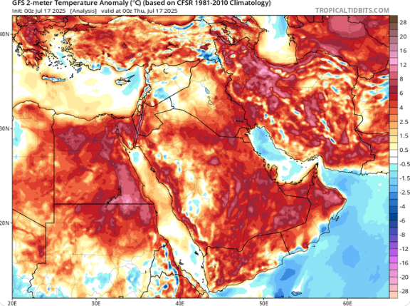 This extreme heat event is characterized by oppressive conditions both day and night, offering no respite even during the coolest hours. The record-breaking minimum temperature at night highlights the severity of this heatwave and signals worsening climate trends in the Middle East.