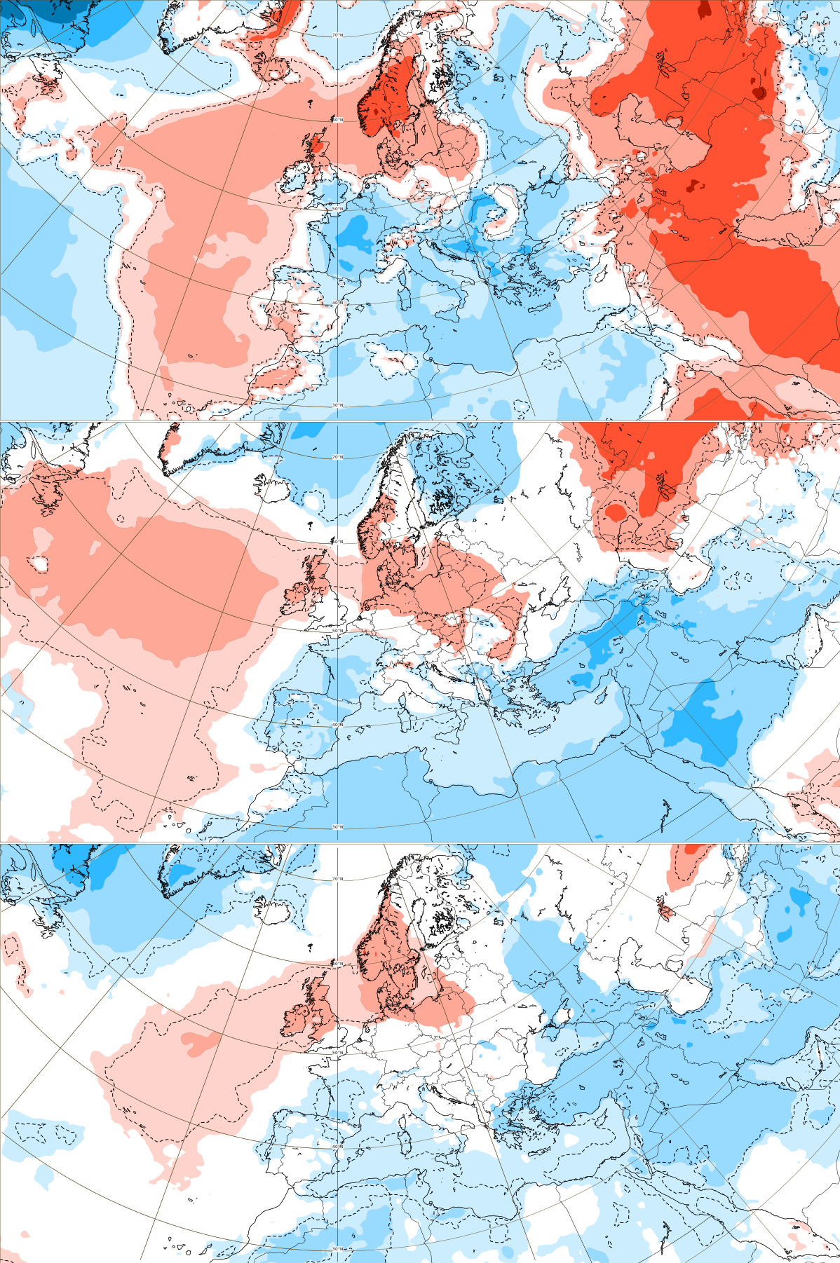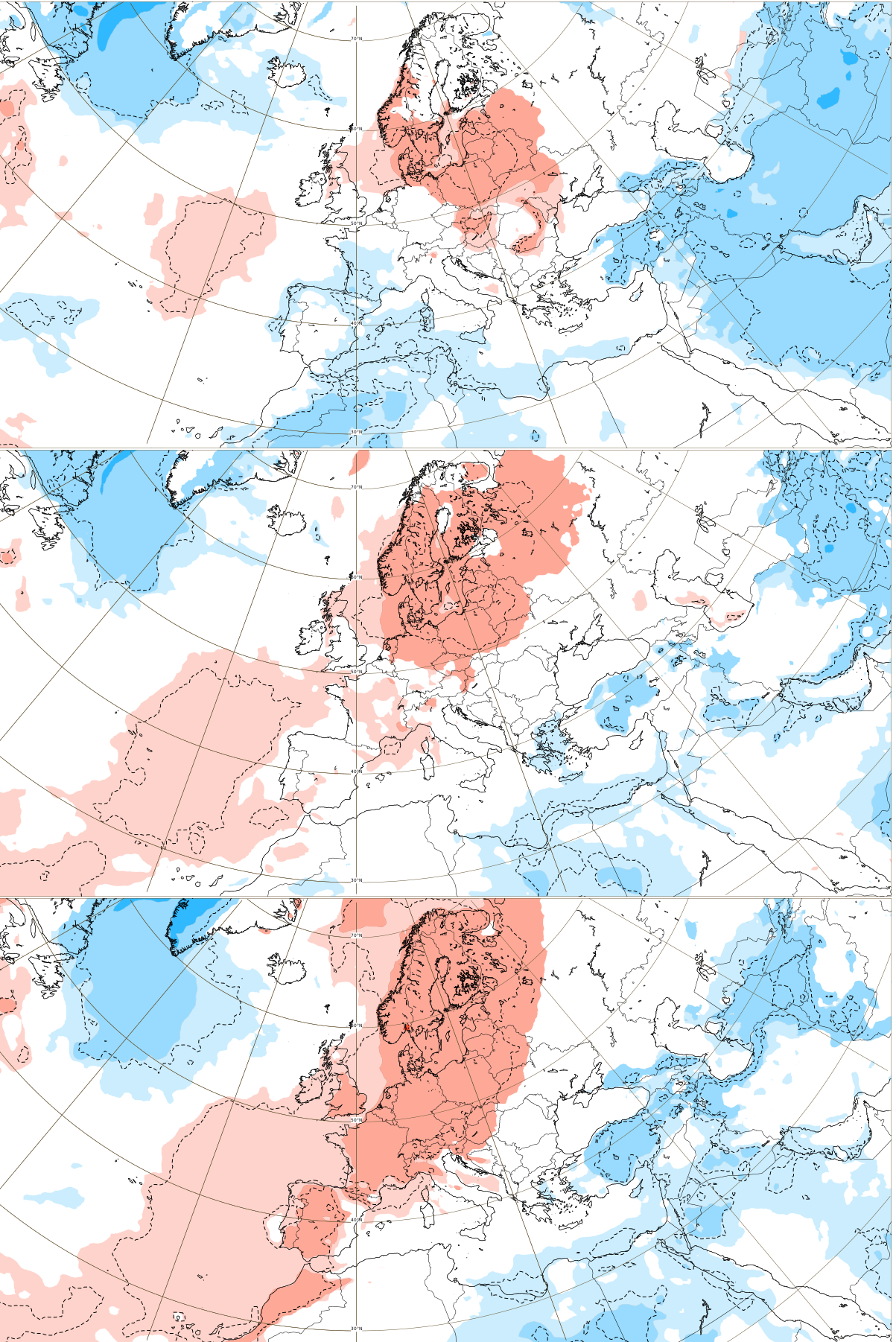 NAO+ will be very probably linked with a strong pressure Azores high near the British Islands and a warm spell shifting from British Islands above Scandinavia, Western, Central Europe, and the western half of the Mediterranean.