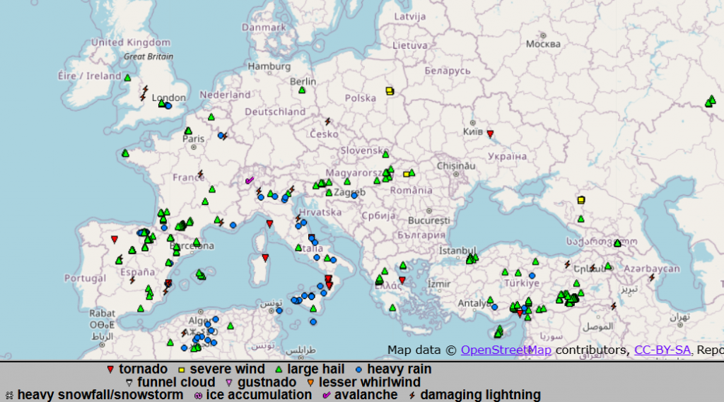 The last 7 days of extreme meteorological events in Europe on ESWD. Source: https://eswd.eu/cgi-bin/eswd.cgi