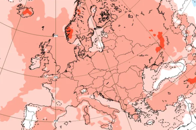 Temperature anomaly for Europe on 2.-9. June 2025. Source: https://charts.ecmwf.int/products/extended-anomaly-2t?base_time=202505180000&projection=opencharts_europe&valid_time=202506090000