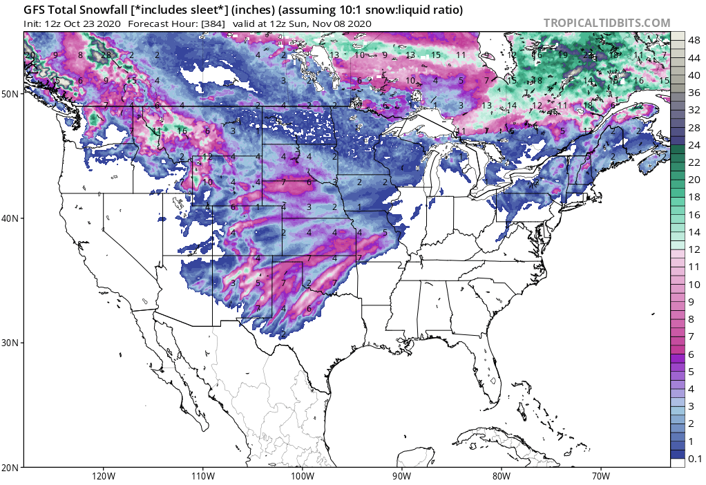 Snow forecasts hasn´t been changed very lot, with expected snow in Montana, Wyoming, Colorado, North Dakota, South Dakota, Nebraska, Kansas, Oklahoma, Minnesota, Wisconsin, Iowa and Missouri and New Mexico in almost whole territory, but too in parts of Washington, Oregon Idaho, Utah, Arizona, Texas, in Great Lakes area and Northeast.