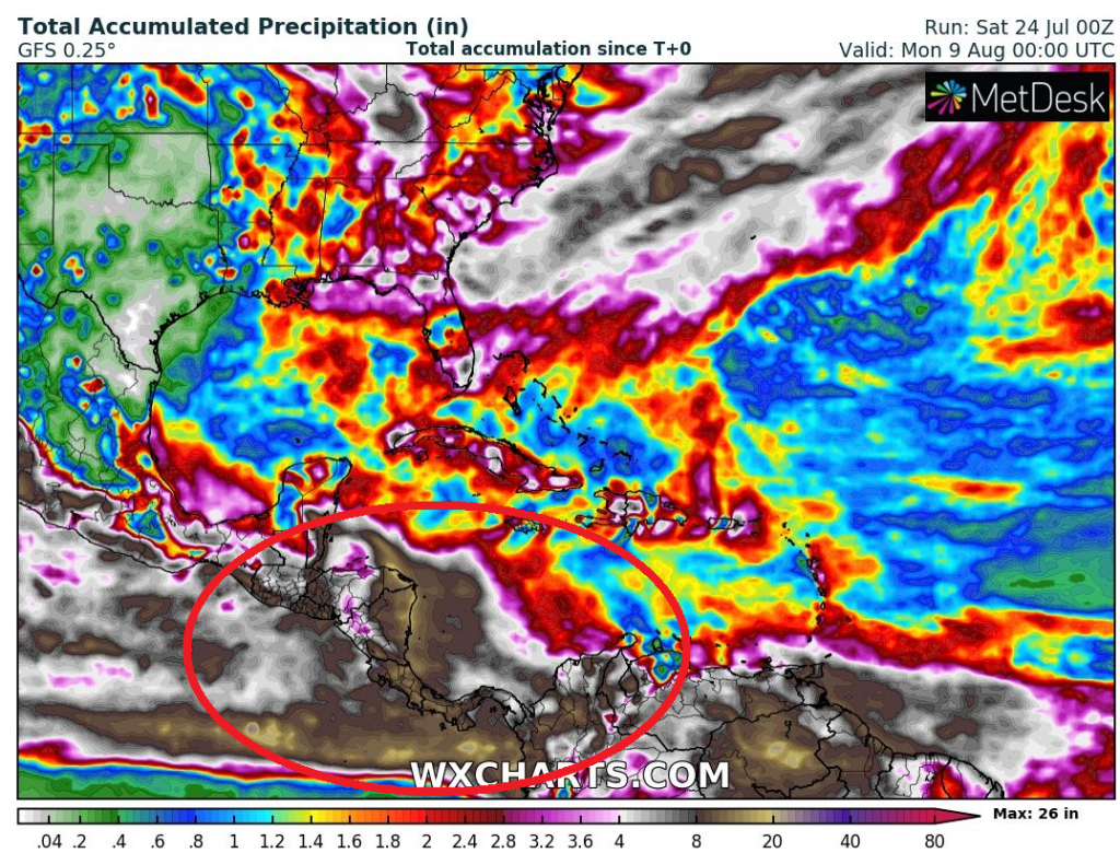 Extreme rainfall up to 26 inches / 700 mm is forecasted for parts of Central America and northern South America until 10. August 2021, what should bring the next severe floods in the region.