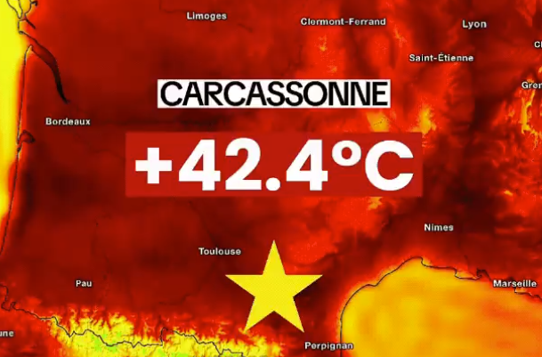 In Carcassonne, the mercury reached 42.4 °C on both Monday and Tuesday — a milestone never before observed since the station opened in 1948. This marks the first time in history that Carcassonne has experienced two consecutive days at or above 42 °C. Even during the infamous heatwaves of 2003 and 2023, such prolonged extreme heat had not occurred.