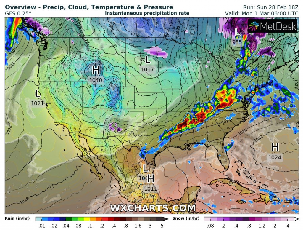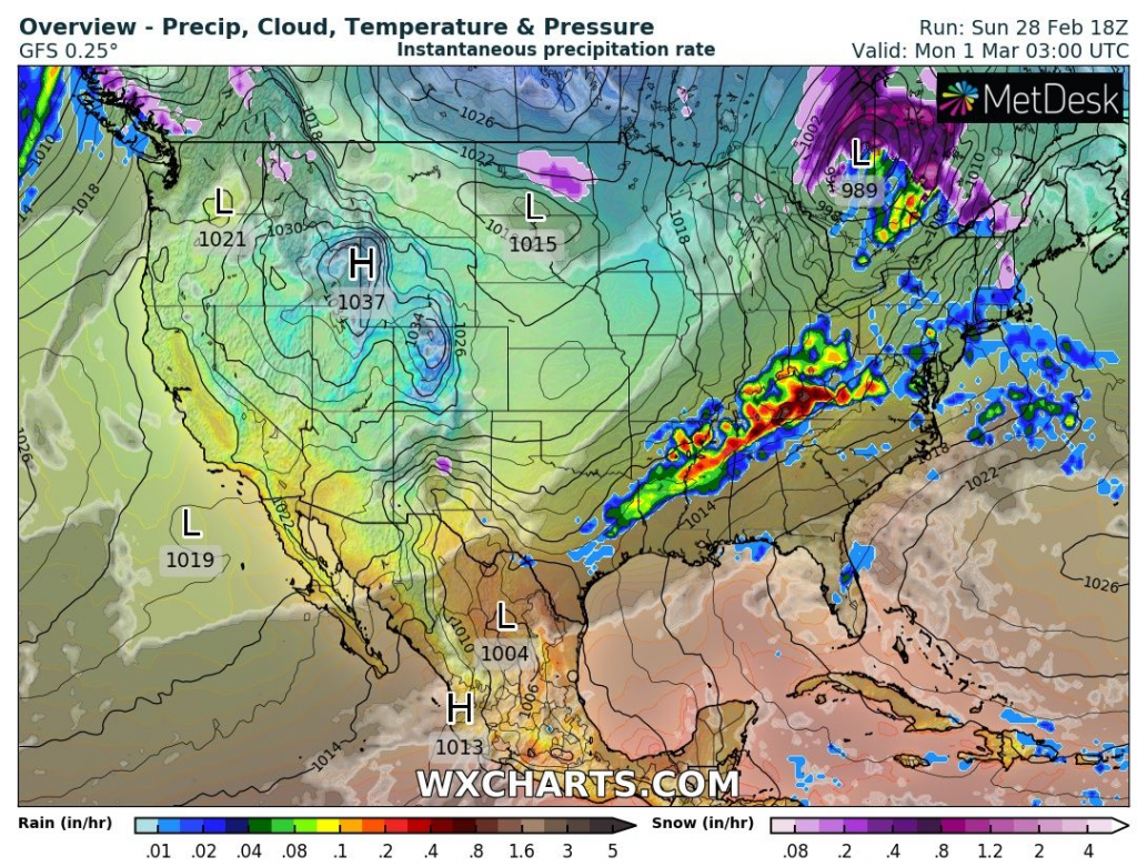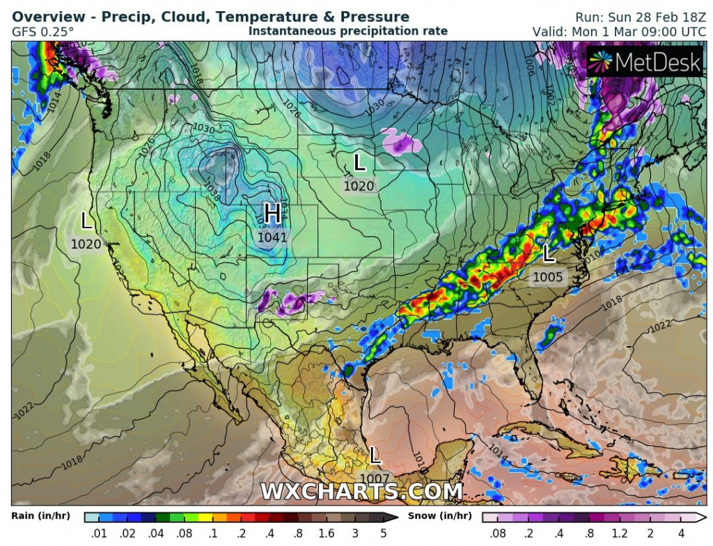 Powerful cold front over the USA and subsequent coldwave in Northeast 1.-2. March 2021 /wxcharts.com