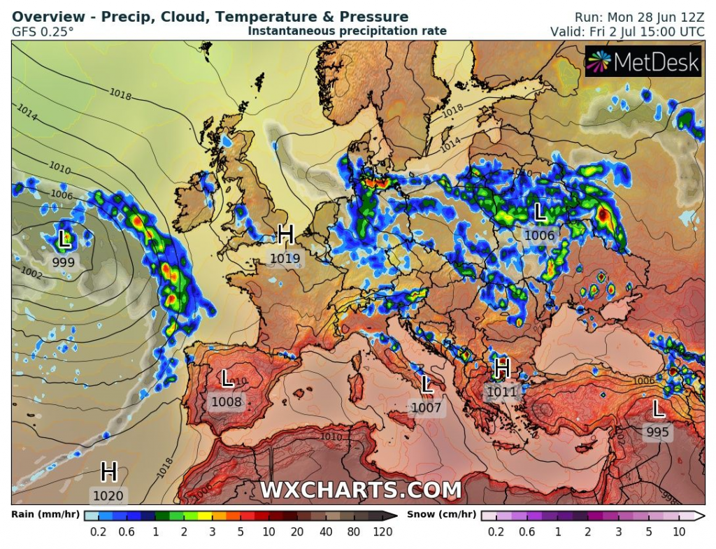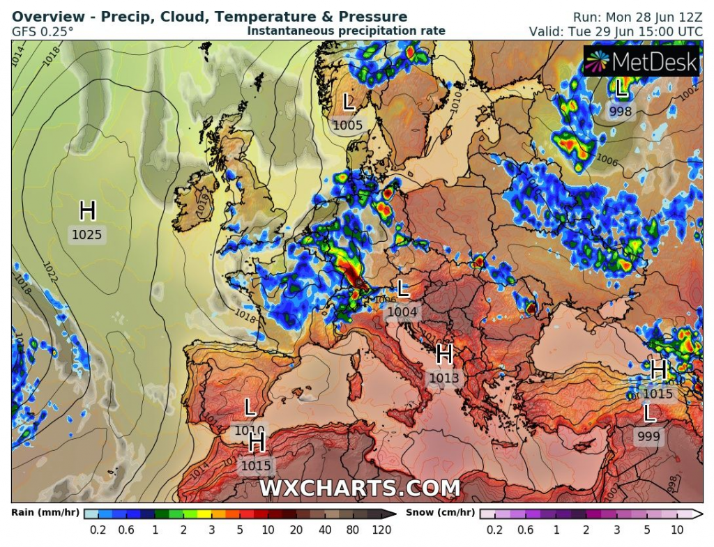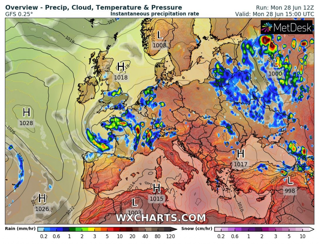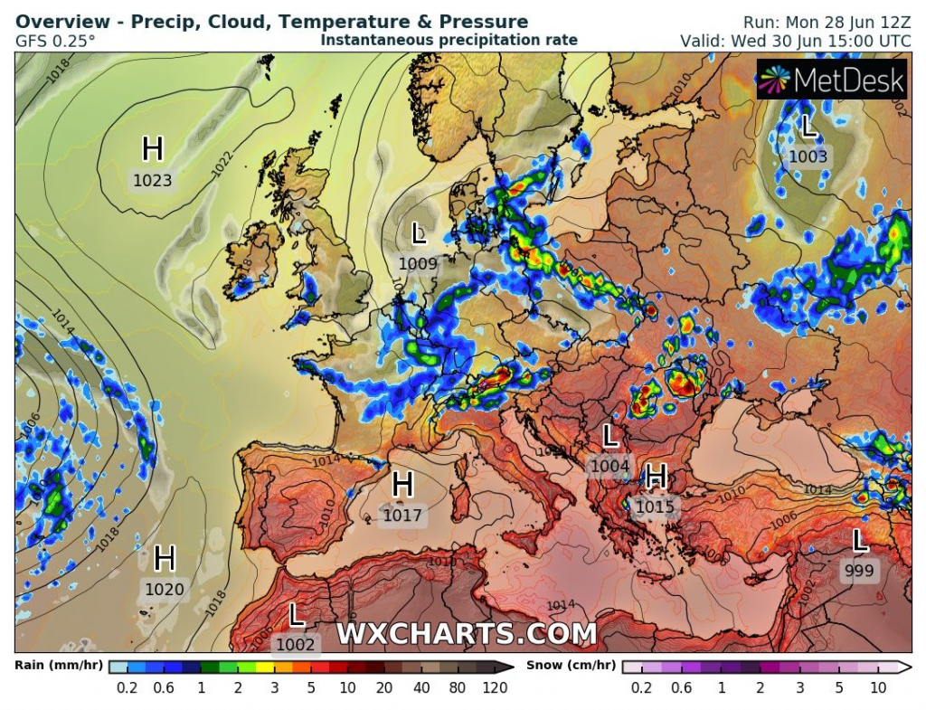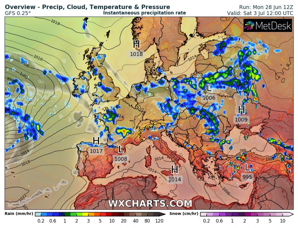 According to current forecasts, the next storm round, after the second heatwave, will continue in Europe until cca 10. July 2021.