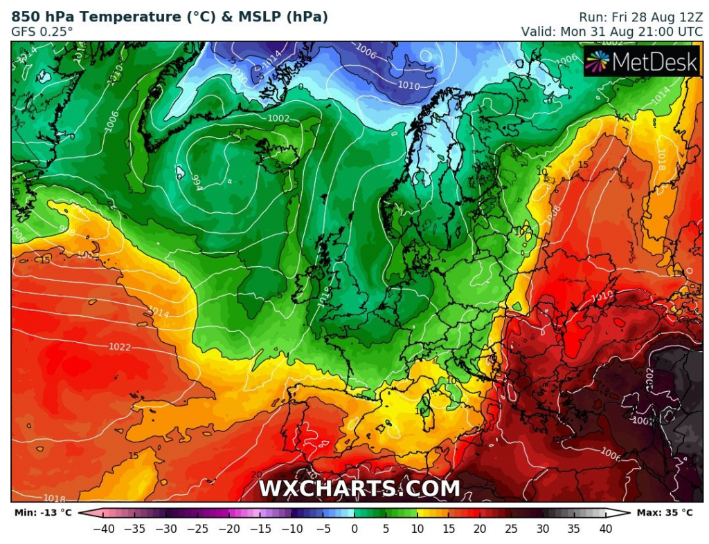 2 windstorms and one pressure low transit over Europe on their classic stormtracks during last days. All 3 systems has brought to Europe cold Arctic air masses with peak of coldwave on Friday, 28. August 2020 in Sweden, where in lower areas was measured only -5,0°C (Latnivaara, 453 MASL). Heavy frosts were reported too from Finland (-4,2°C, Salla Naruska, 213 MASL) and Norway (-4,9°C, Fileefjell, 955 MASL) during last 48 hours.