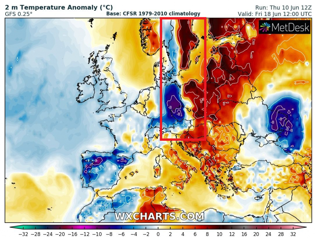 After the next heatwave /June 2021 brings in Europe deadly heatwaves, storms in the mountains and drought in lowlands: the Spain +46°C, Italy / Greece +42°C, Central Europe +35°C, the UK / Scandinavia +32/33°C – mkweather; June 2021 brings in Europe deadly heatwaves, storms in the mountains and drought in lowlands: the Spain +46°C, Italy / Greece +42°C, Central Europe +35°C, the UK / Scandinavia +32/33°C – mkweather/, violent storms should appear on cold front in central parts of Europe already in 7 days, around Friday, 18. June 2021.