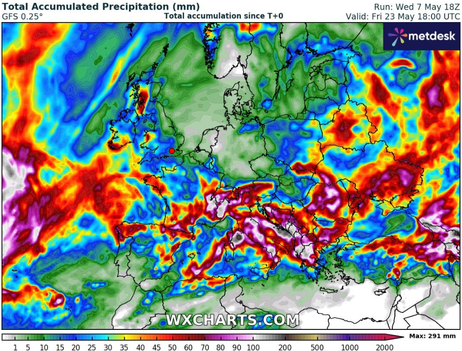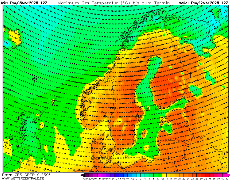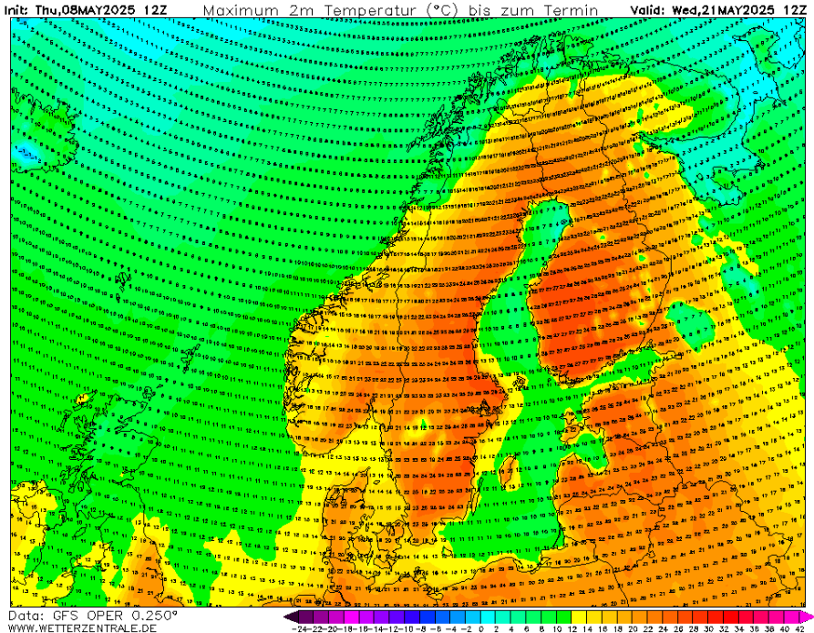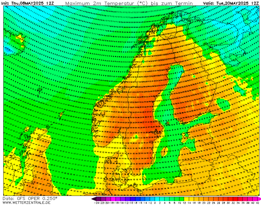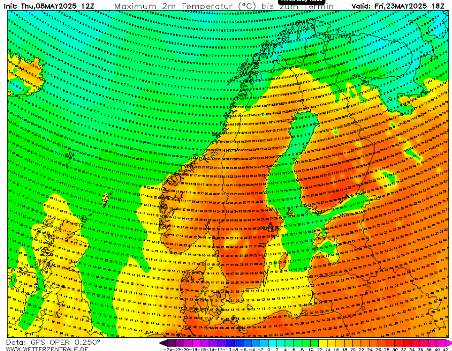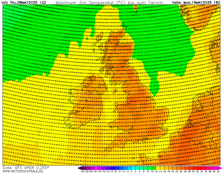 Then, from SW will traditionally come the next heatwave, with some warm days from 16. to 20. May in Western and Southwestern Europe, between. 20.-25. May 2025 already in Continental Europe and even Scandinavia, where temperatures up to +30°C, maybe +33°C are forecast to be observed (including Sweden and Finland (!)).