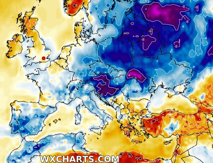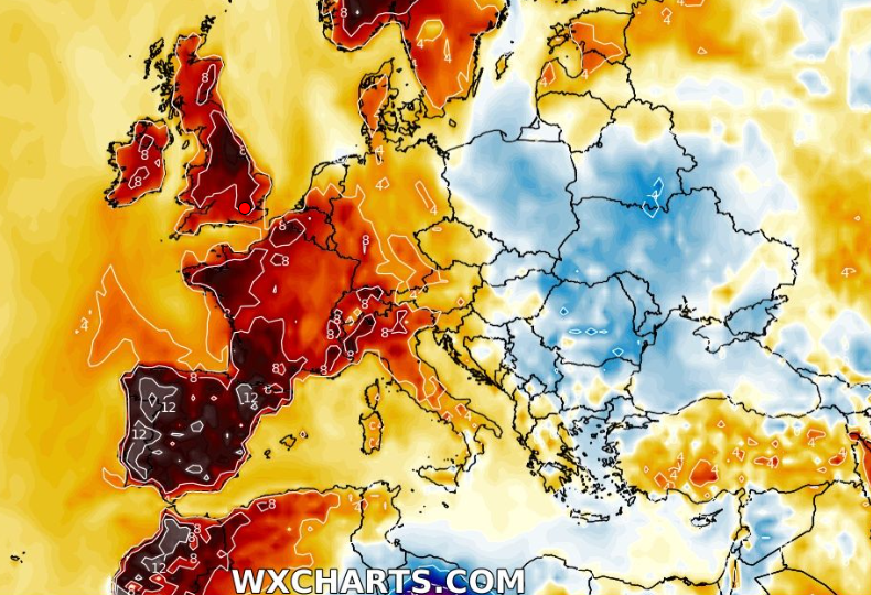 Change of temperature anomalies in Europe – DAY 1 and DAY 15 (8. and 23. May 2025). Source: https://www.wxcharts.com/